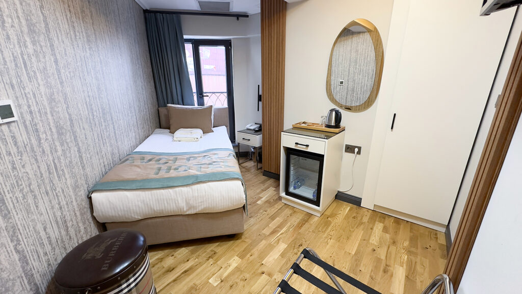 İş seyahati ya da bireysel konaklamalar için mükemmel bir seçenek olan tek kişilik odalarımız, sade ve modern tasarımları ile konuklarımıza huzurlu bir atmosfer sunar. Yüksek konforlu yataklar, özel banyo ile donatılmış odalarımız, işlerinizle meşgulken dahi konforunuzu düşünür.